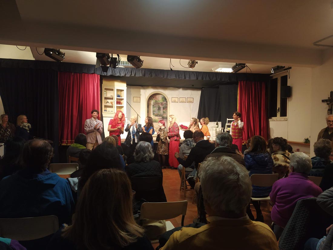 2025/10/05, Riola – Arrivata la notizia senza tanto clamore, ma la rinomata compagnia “I Pronipoti di Lollo” hanno raccolto un pubblico inaspettato nella sala parrocchiale di Riola per lo spettacolo teatrale pro opere parrocchiali.