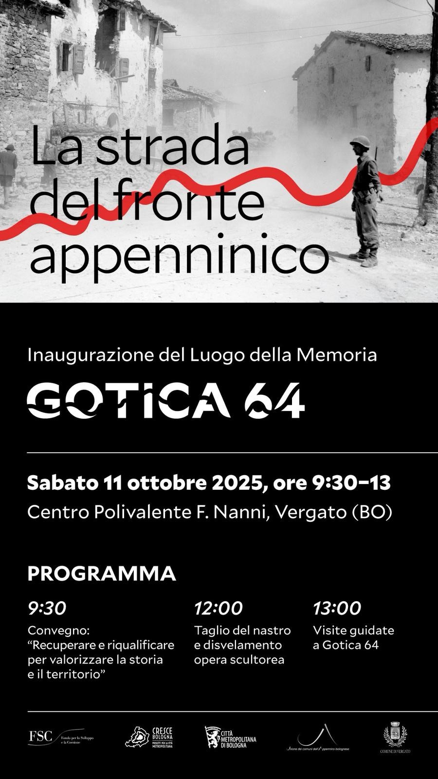Il Comune di Vergato รจ lieto di annunciare lโinaugurazione del centro documentale “Gotica 64” il nuovo Luogo della Memoria dedicato alla storia del fronte appenninico, nato dal progetto di rigenerazione delle Fornaci Bonani Pelloni; unโiniziativa che unisce ricordo storico, cultura e valorizzazione del territorio, restituendo alla comunitร uno spazio che custodisce la memoria del passato e si apre al futuro.