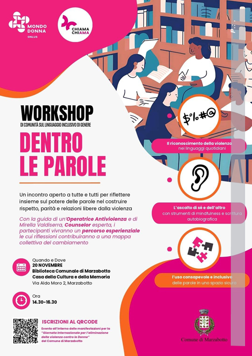 2025/11/22, Marzabotto – Il programma delle iniziative organizzate dal Comune di Marzabotto in occasione della Giornata internazionale per l’eliminazione della violenza contro le donne. Gli eventi si svolgeranno dal 20 al 25 novembre e sono tutti a ingresso libero. Sono allegate le rispettive locandine.