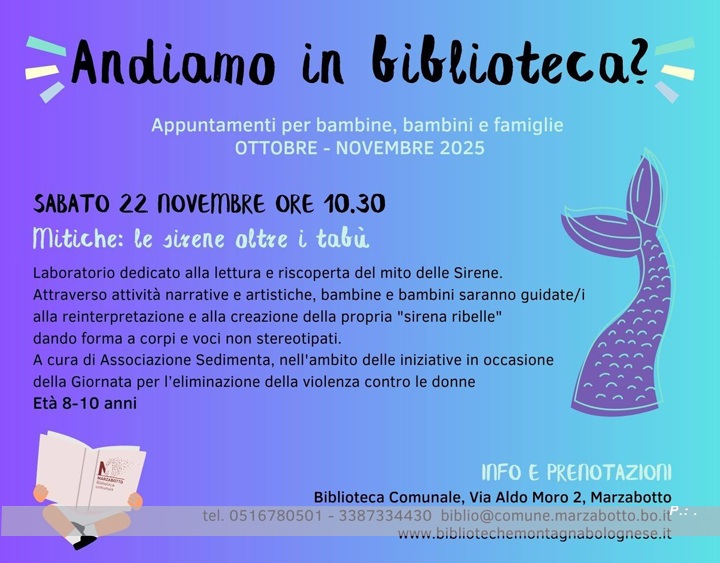 Sabato 22 novembre la giornata è ricca di eventi. La mattina alle 10:30 in biblioteca c’è “Andiamo in biblioteca?” — un’attività per bambini dagli 8 ai 10 anni e le loro famiglie, curata dall’associazione Sedimenta APS. Sempre sabato, dalle 10:00 alle 17:00 nella sala polivalente, potete trovare la vendita di oggetti per la casa realizzati dalle Donne dell’Albero. La sera, alle 17:30, stessa location, Stefania Lapenta terrà una conferenza con intermezzi teatrali su Artemisia Gentileschi.