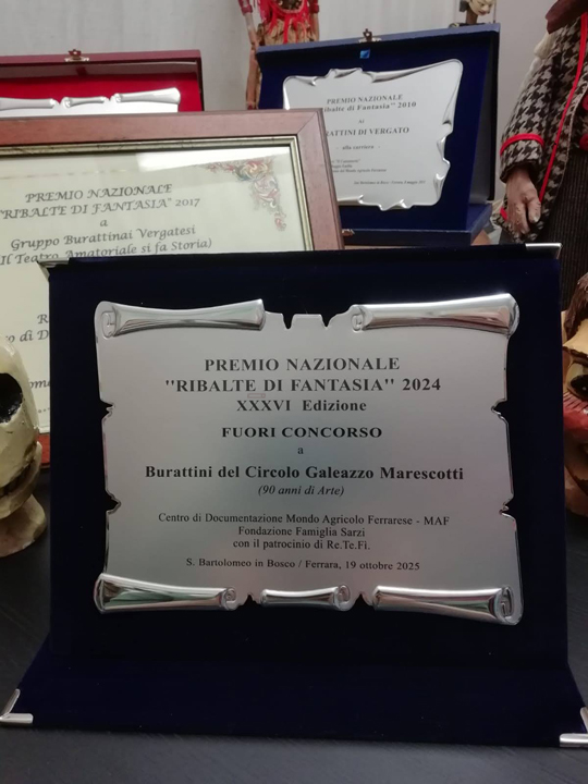 Il Premio “Ribalte di Fantasia” 2024 ha premiato il Circolo Culturale “Galeazzo Marescotti” di Vergato il 27 ottobre 2024… Il premio ha coperto diverse sezioni, tra cui teatro di burattini, copioni ispirati a fiabe, video e progetti scolastici. La cerimonia di premiazione si è svolta nel MAF – Centro di Documentazione del Mondo Agricolo Ferrarese.