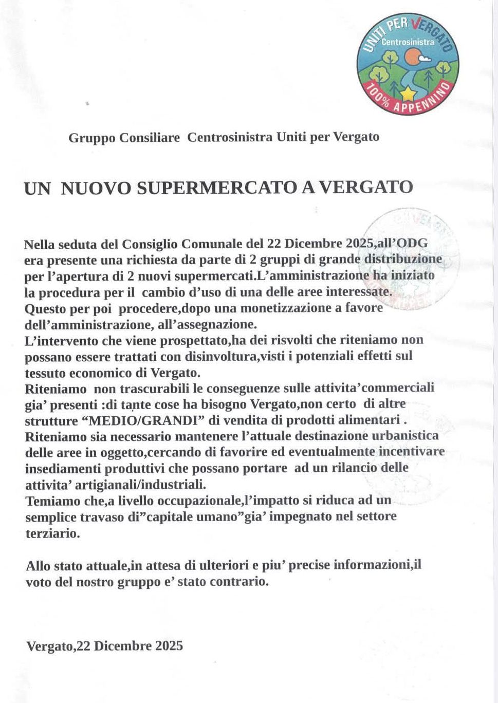 Vergato, 22 Dicembre 2025