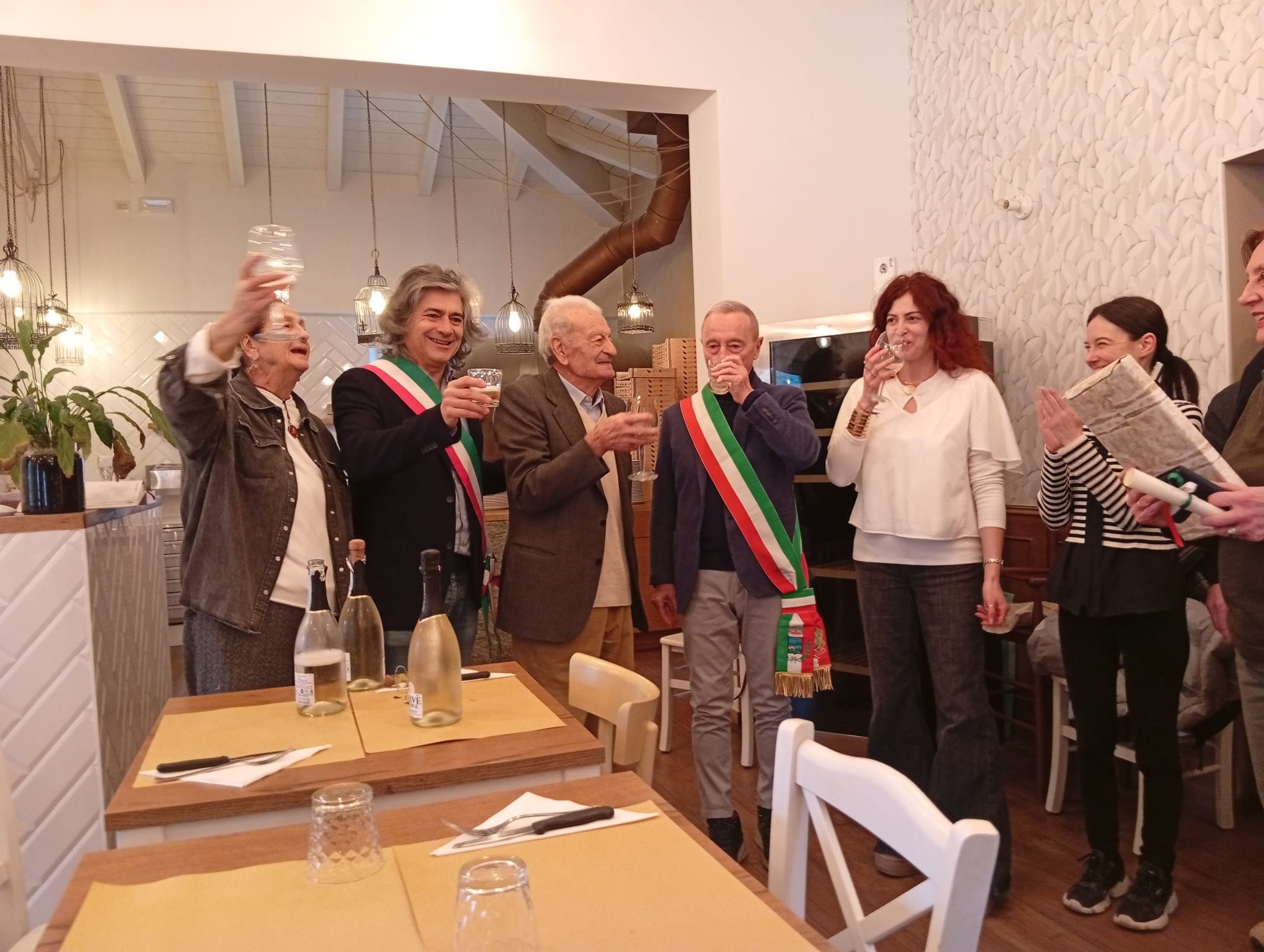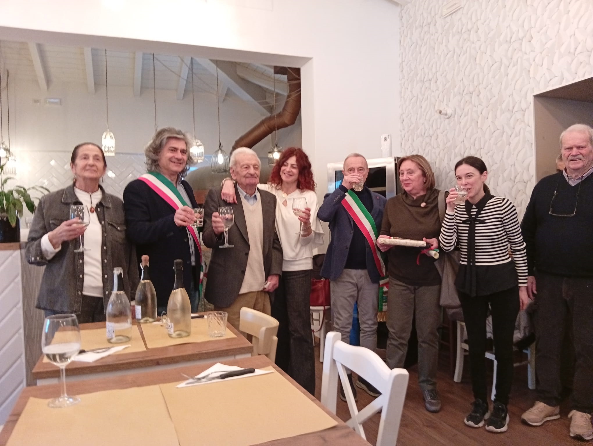 Una condivisione che ha permesso a molti avventori, parenti, amici di partecipare alla festa presso il Bar Pizzeria “Pina” di Grizzana Morandi. Presenti due sindaci; di Vergato, Giuseppe Argentieri e di Grizzana, Franco Rubini.