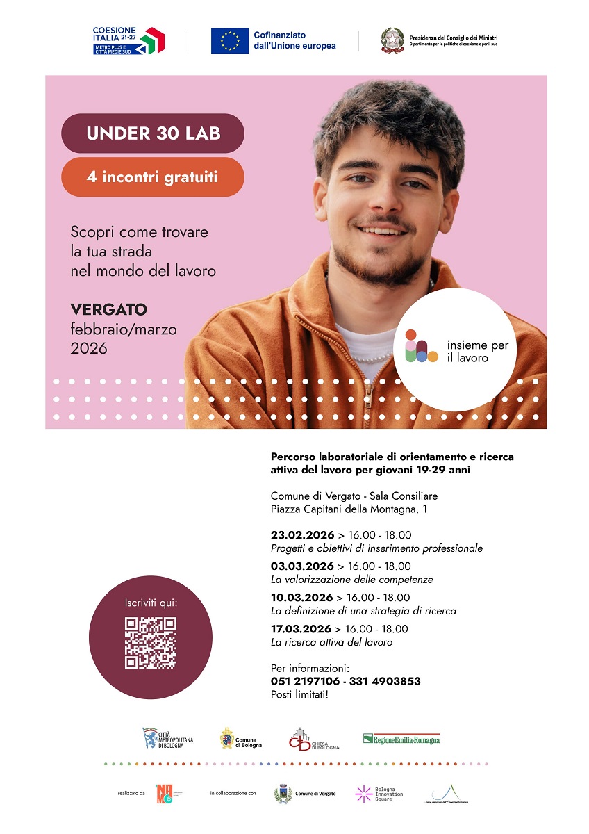 2026/02/12, Vergato_ Parte a Vergato “Under 30 Lab“, il nuovo progetto rivolto ai ragazzi e alle ragazze tra i 19 e i 29 anni per l’orientamento e la ricerca attiva di opportunità occupazionali.