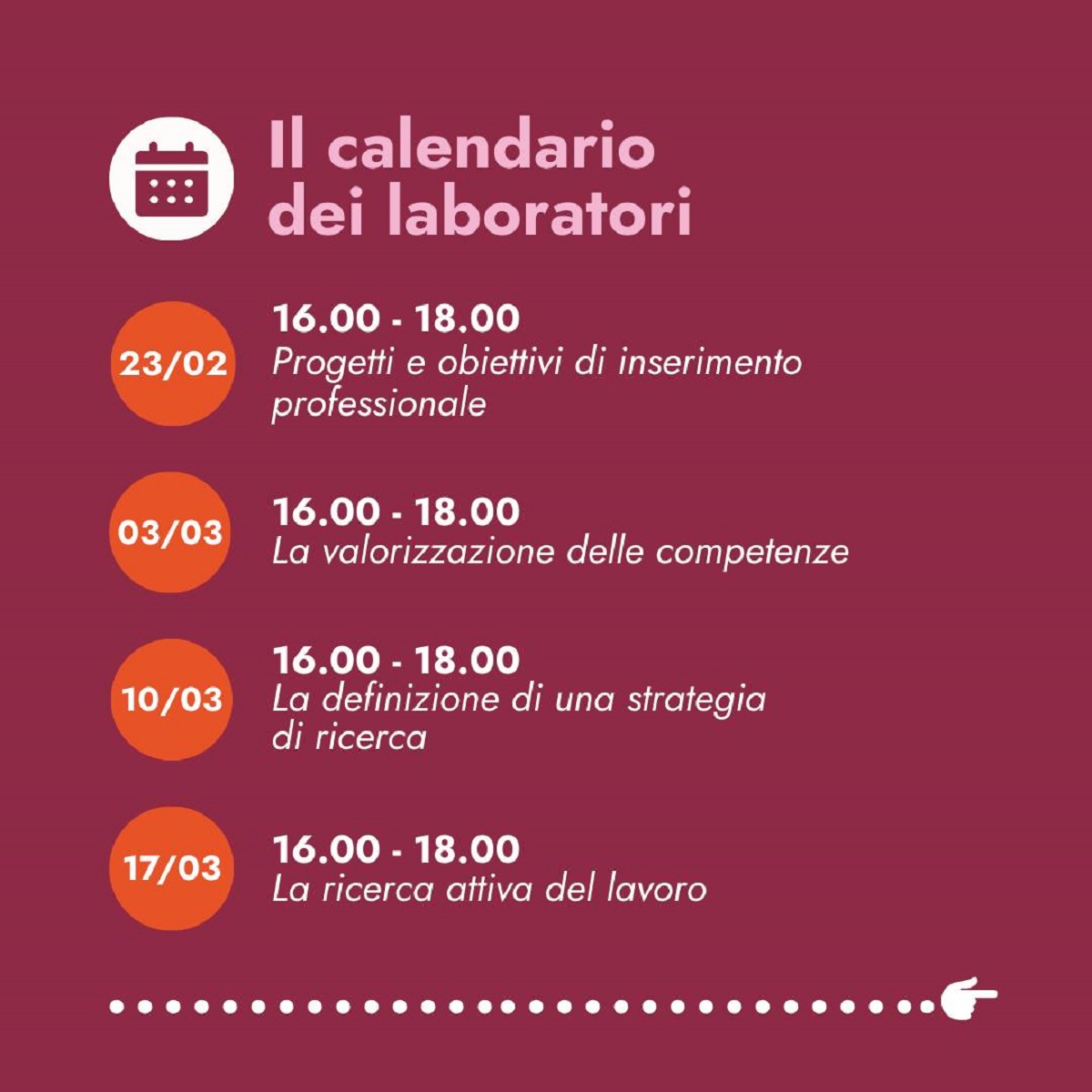 – 23 febbraio 2026 (16.00–18.00) – Progetti e obiettivi di inserimento professionale;