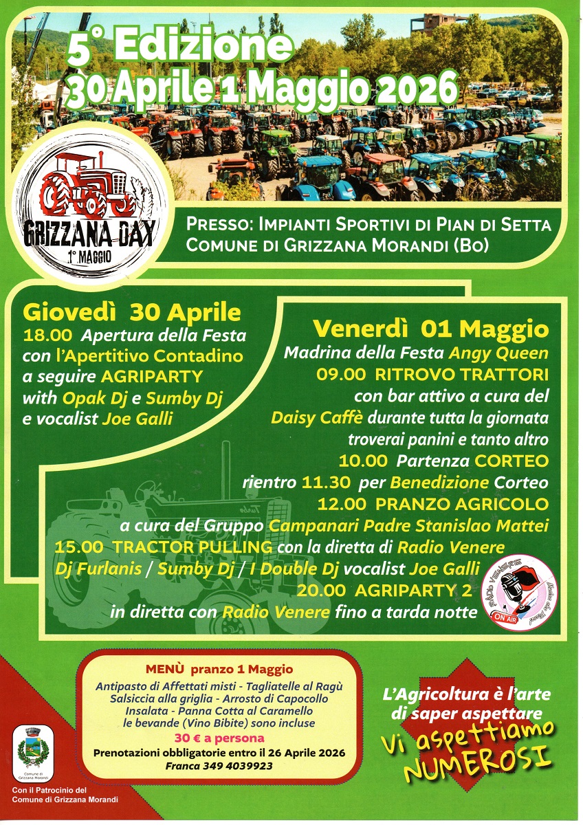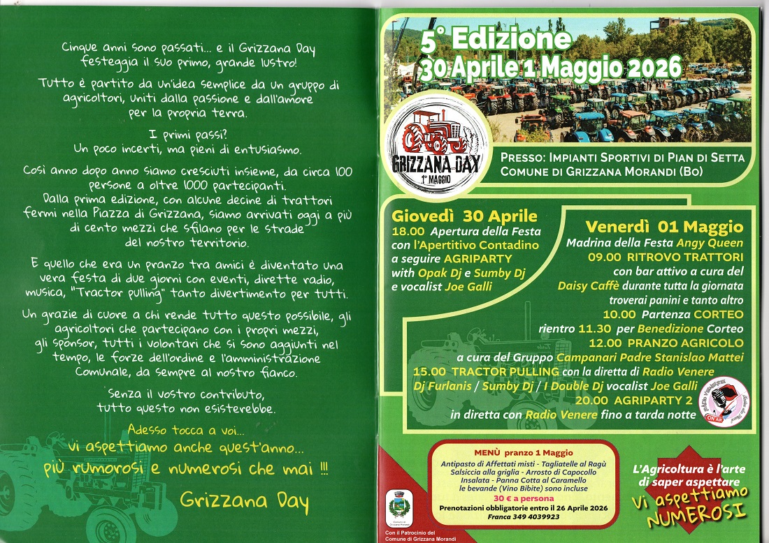 Grizzana Day 2026 – Raduno trattori e festa contadina il 30 Aprile e 1° Maggio