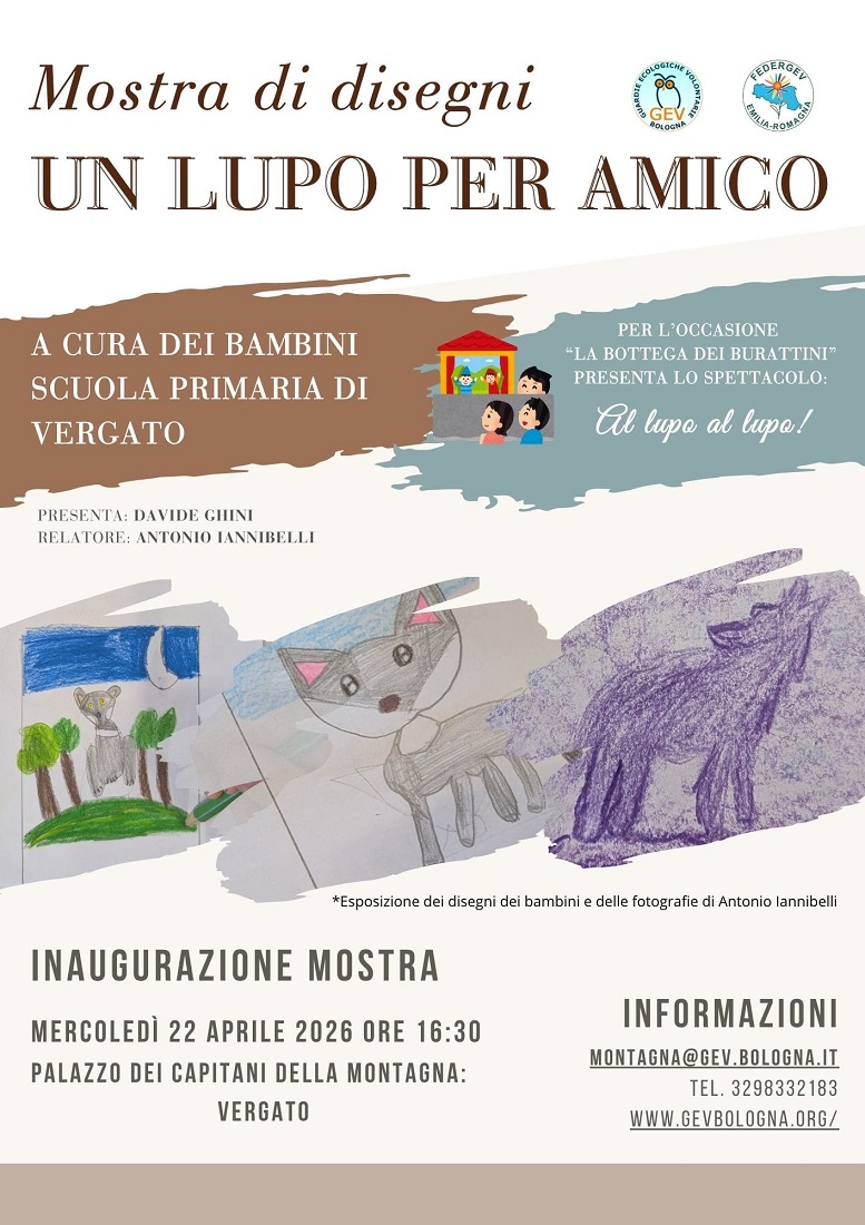 Sarà inaugurata mercoledì 22 aprile 2026 alle ore 16:30, all’interno del Municipio di Vergato, la mostra “Un lupo per amico”, evento conclusivo di un importante percorso di educazione ambientale che ha coinvolto le scuole del territorio.