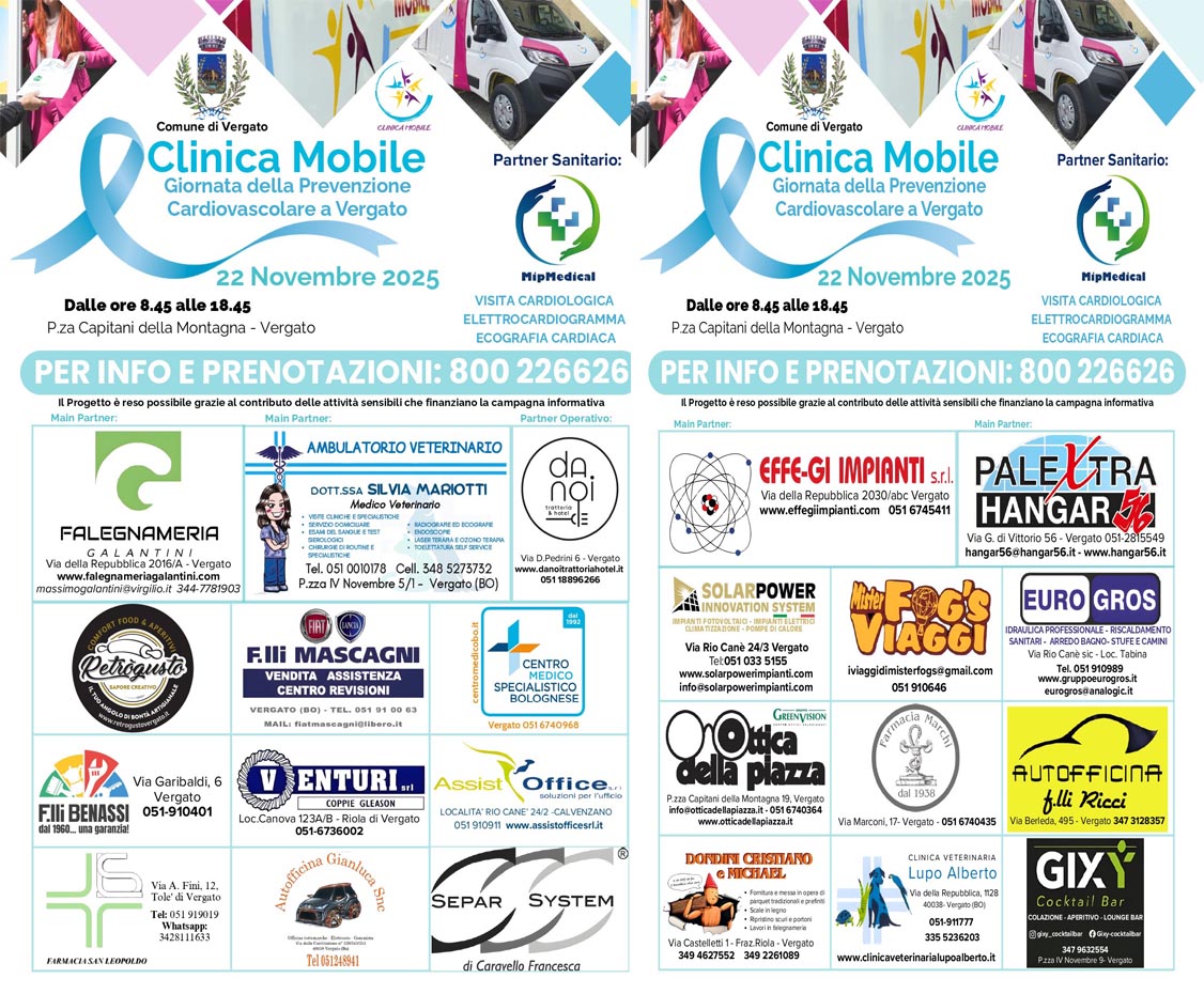 2025/11/17, Vergato – Giornata della Prevenzione Cardiovascolare a Vergato: sabato 22 novembre 2025 un’intera giornata dedicata alla salute dei cittadini Sabato 22 novembre 2025, in Piazza dei Capitani della Montagna, arriva a Vergato la Giornata della Prevenzione Cardiovascolare, un’iniziativa inserita nel progetto “Vivere il Comune” e realizzata in collaborazione con …