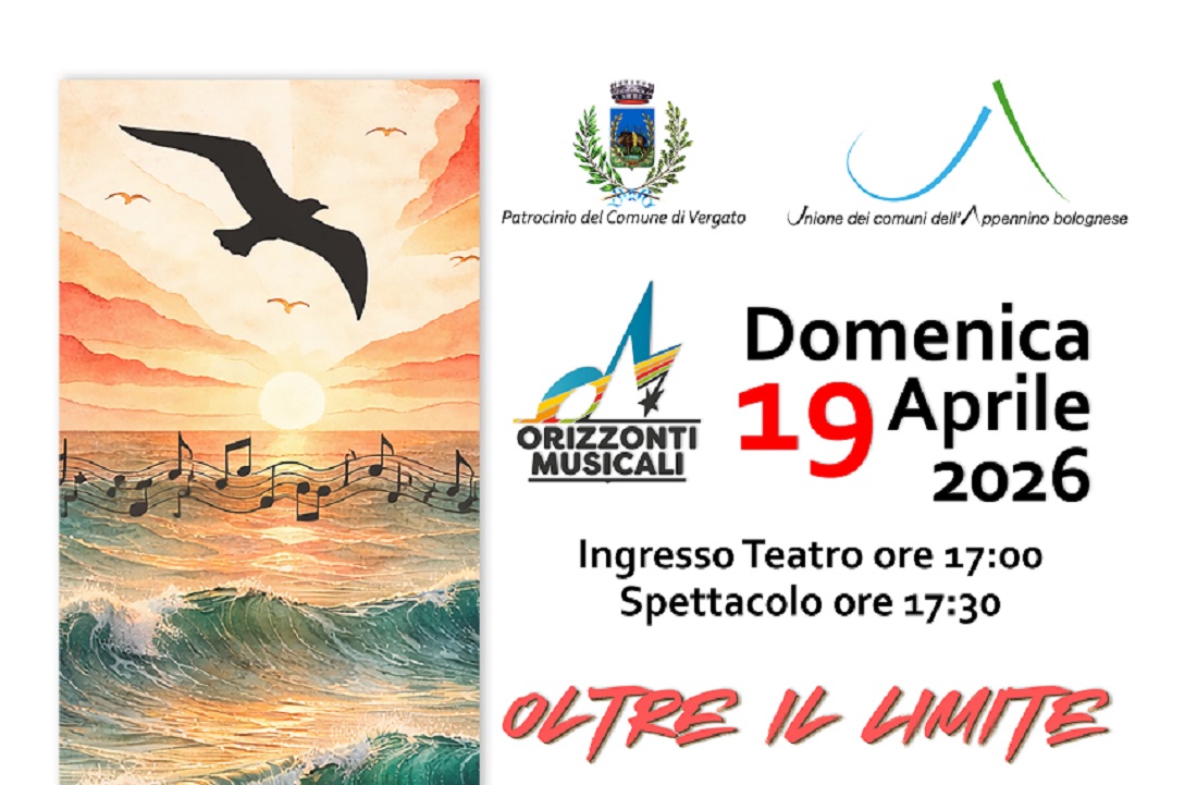 2026/03/13, Tolè (Vergato) – Domenica 19 aprile 2026 il Piccolo Teatro di Tolè mette in scena “Oltre il limite – Viaggio musicale con il gabbiano Jonathan Livingston”, uno spettacolo che unisce musica dal vivo e narrazione, con protagonisti i giovani allievi della Scuola di Musica Orizzonti Musicali di Bologna. Il progetto …